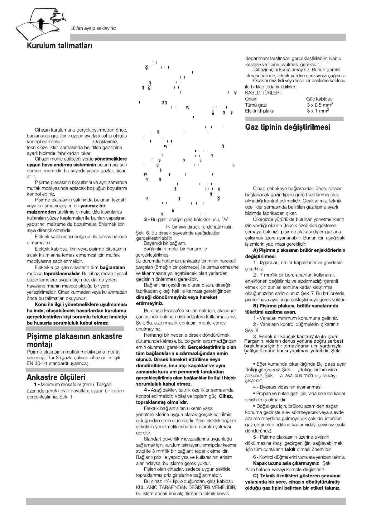 Bütün kurulum, ayarlama ve gaz tipine göre