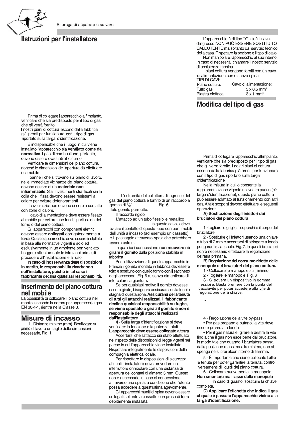 cottura a gas, si suggerisce di situare un
