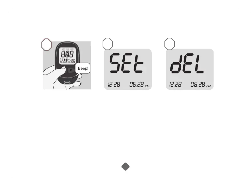 3. Press and release ‘M’ button until the screen will show the word ‘dEL’
