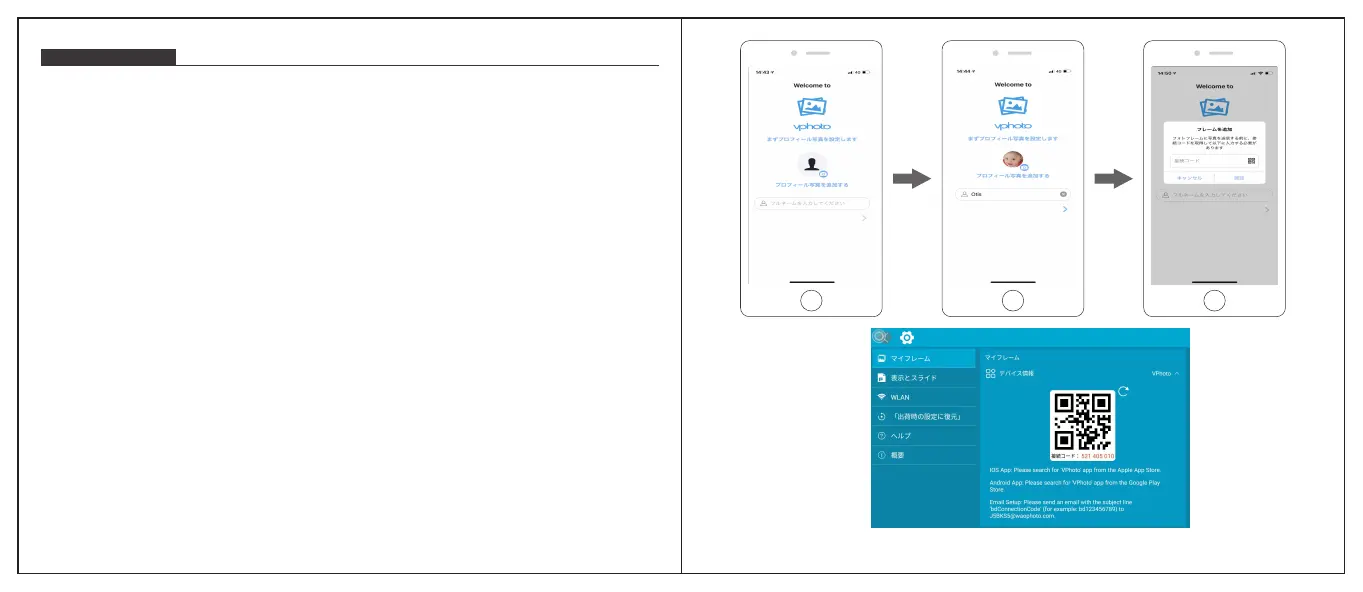 ③ 次に、接続コードを入力するか、フレームの「設定→マイフレーム」にあるQRコ