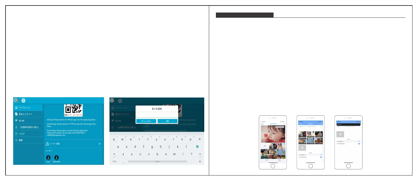 注意:•フレームに写真や動画が届かない場合は、本製品を再起動するか、Wi-Fiネット