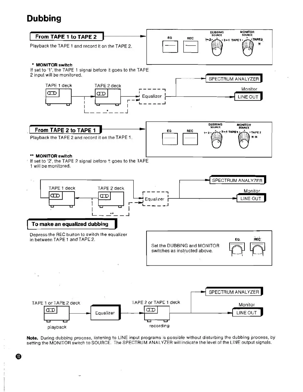Note. During dubbing process, listening to LlNE input programs is possible without disturbing the dubbing process, by