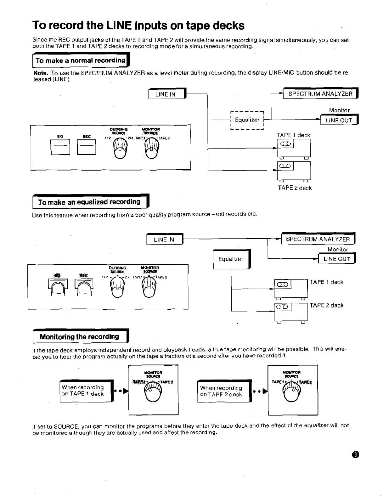 programs before they enter the tape deck and the eftect of the equalizer will not