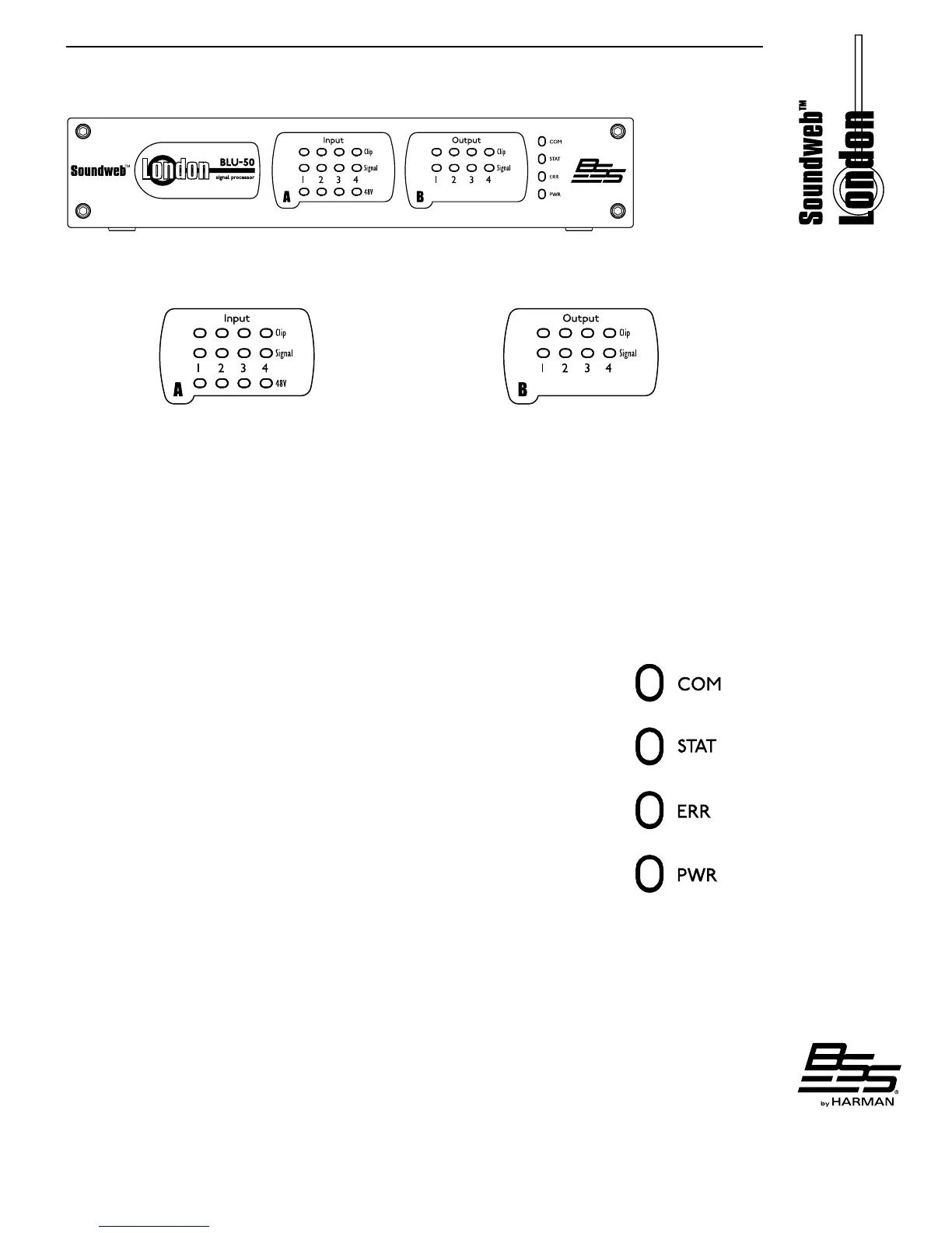 The output section has the same LEDs, without the 48V