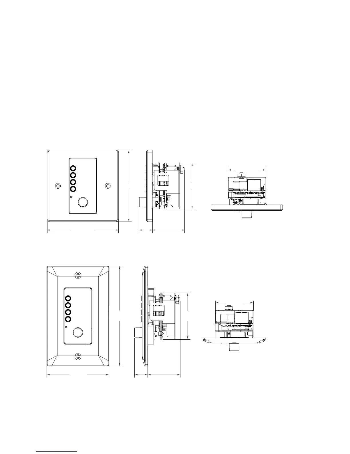 Dimensions of each Ethernet wall controller model are shown below.