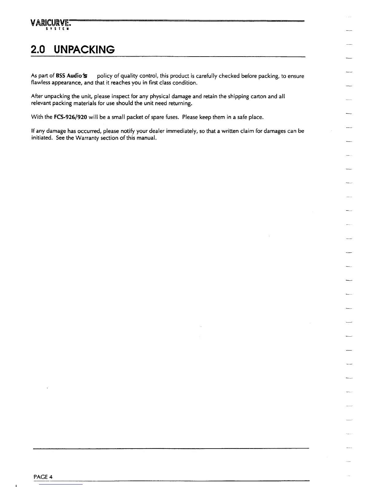BSS Audio FCS-926 - Unpacking and Installation; Unpacking the Unit