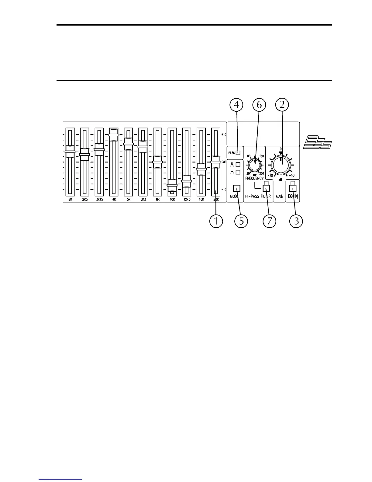7 High pass filter switch selects whether the filter is in or out of circuit. Pressing the switch