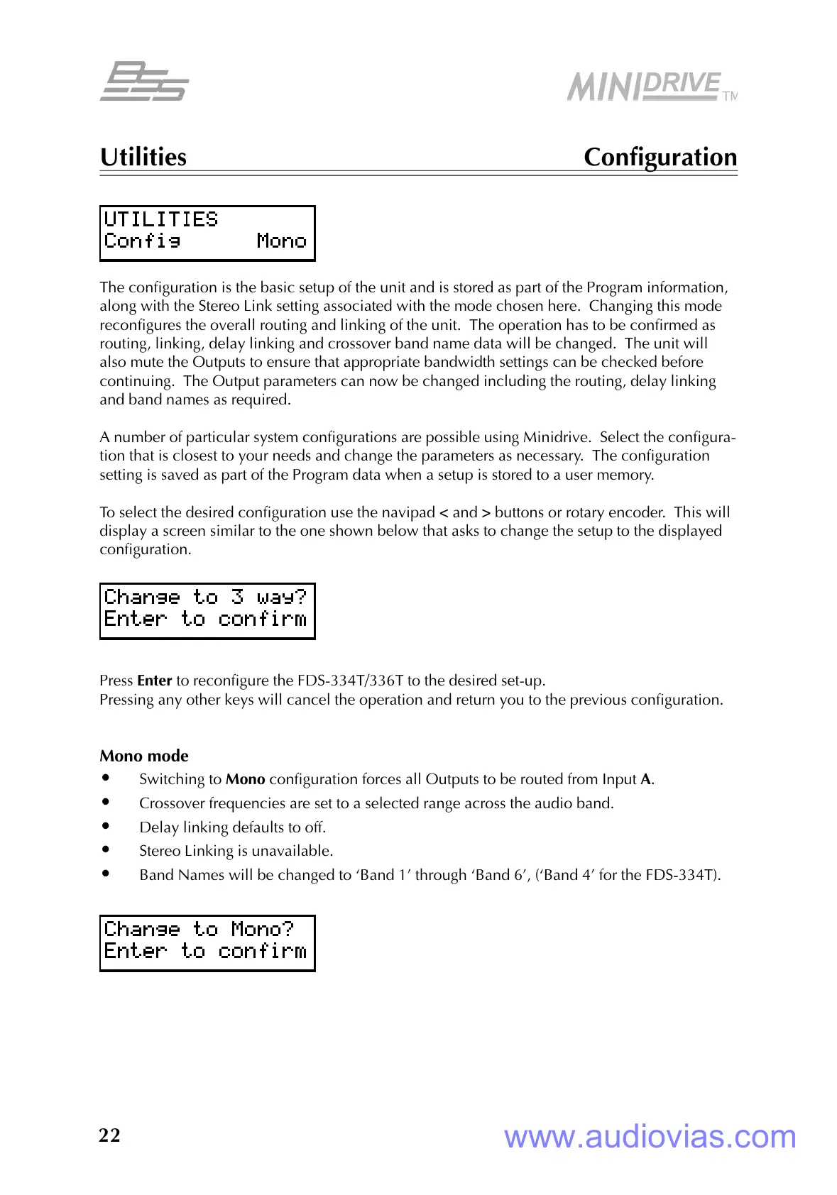 A number of particular system configurations are possible using Minidrive. Select the configura-
