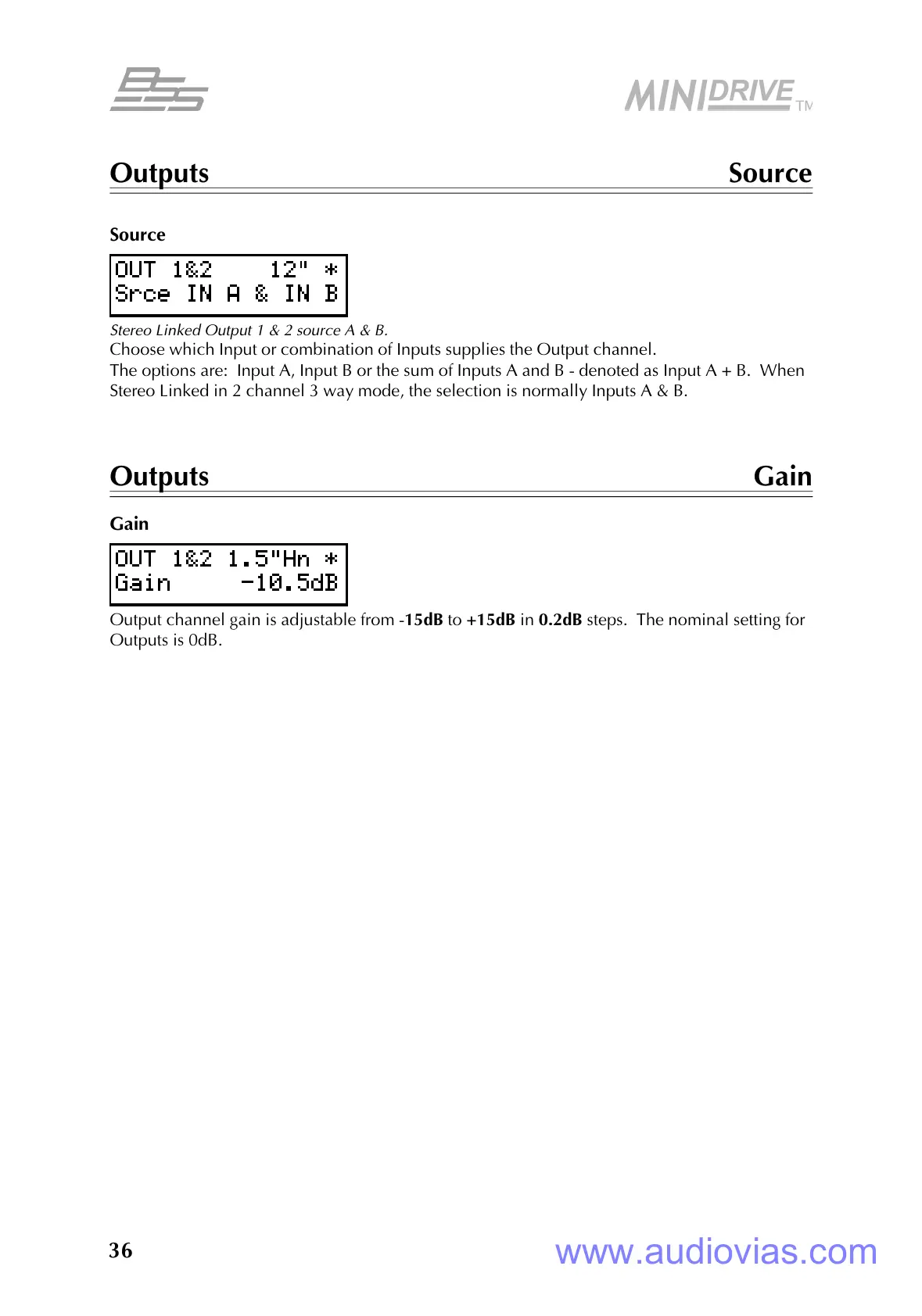 Output channel gain is adjustable from -15dB to +15dB in 0.2dB steps. The nominal setting for
