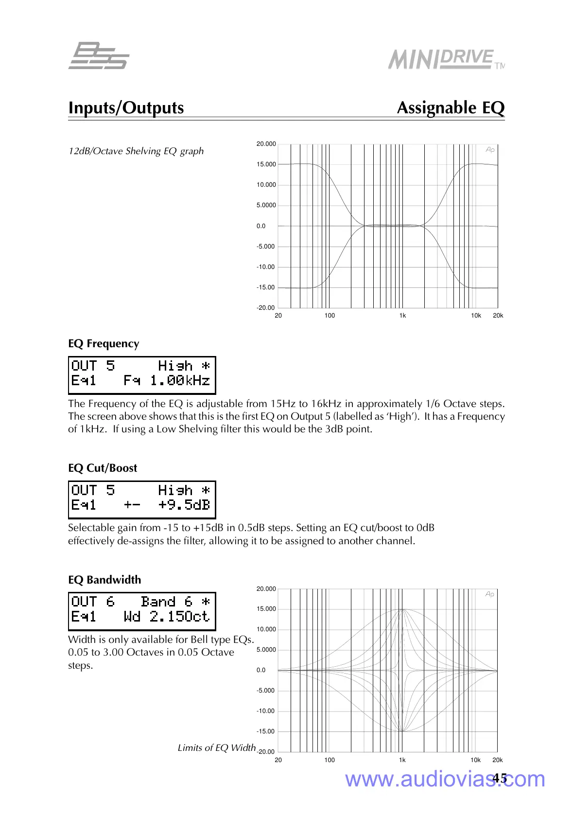 Selectable gain from -15 to +15dB in 0.5dB steps. Setting an EQ cut/boost to 0dB