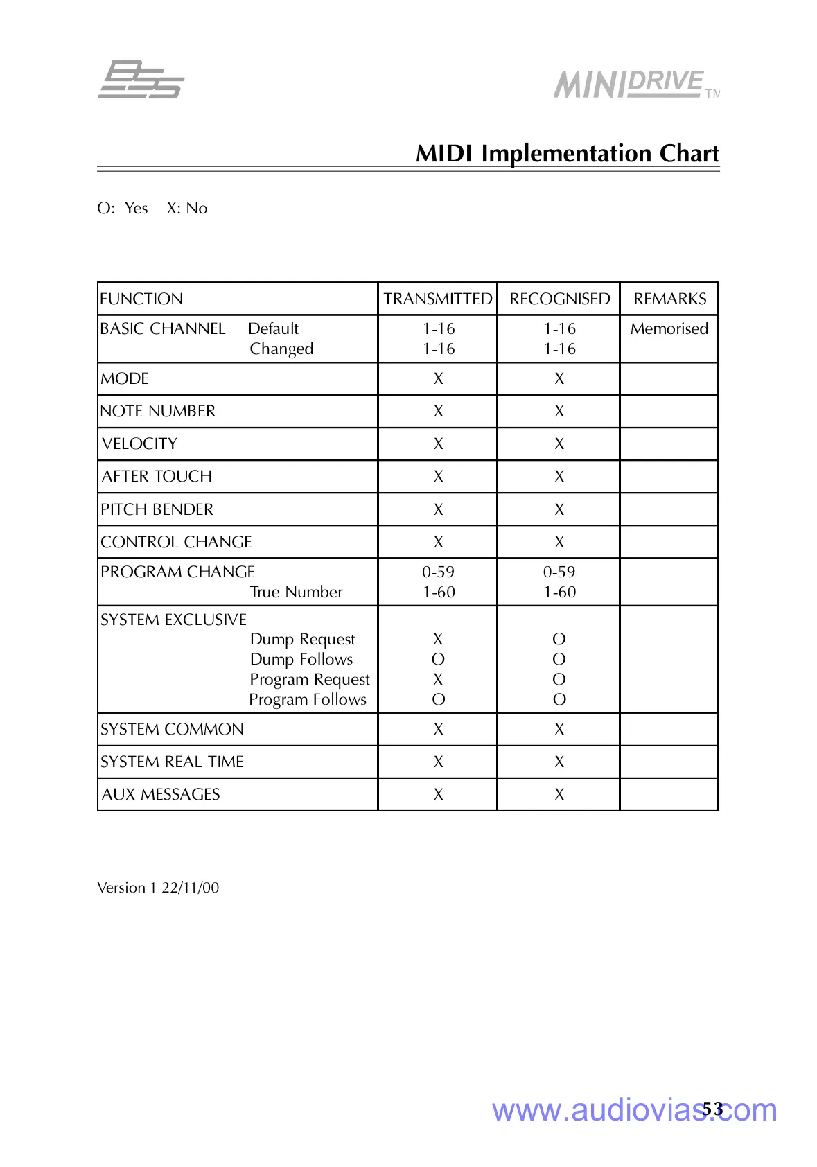 MIDI Implementation Chart
