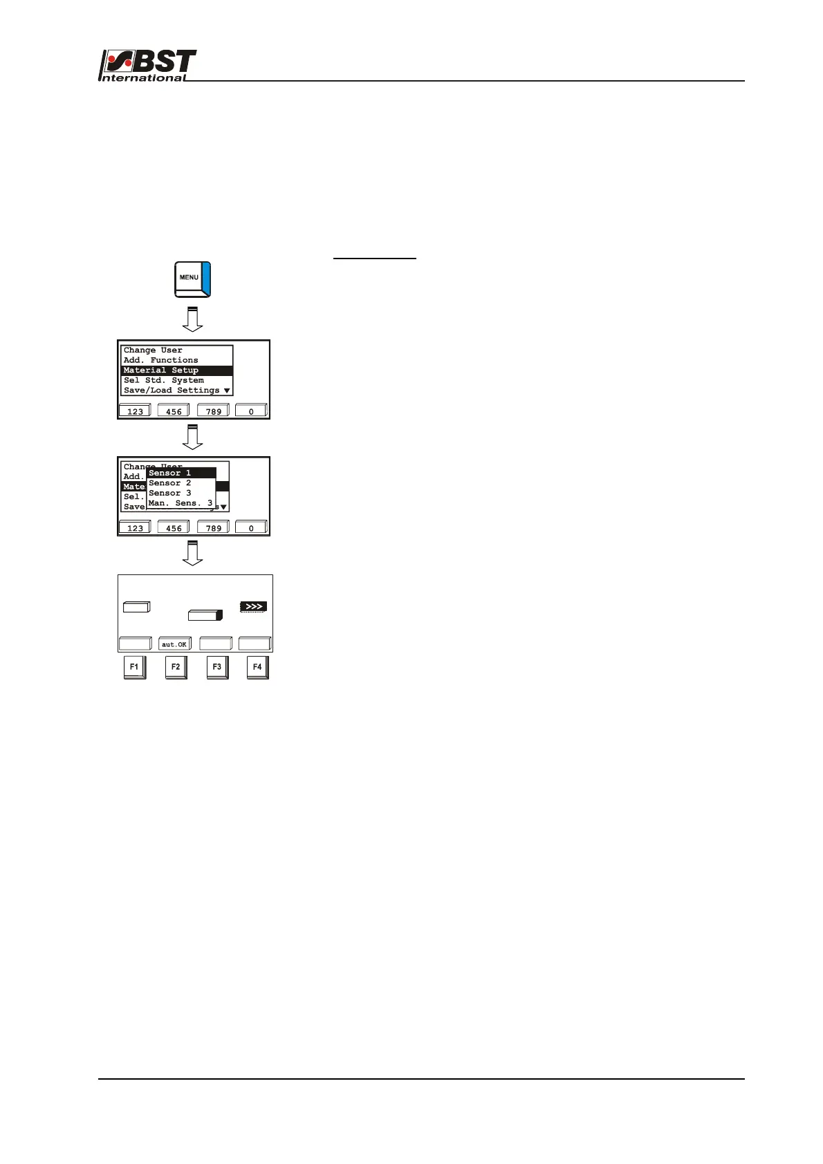 2. Select Material set-up and confirm by pressing ENTER.