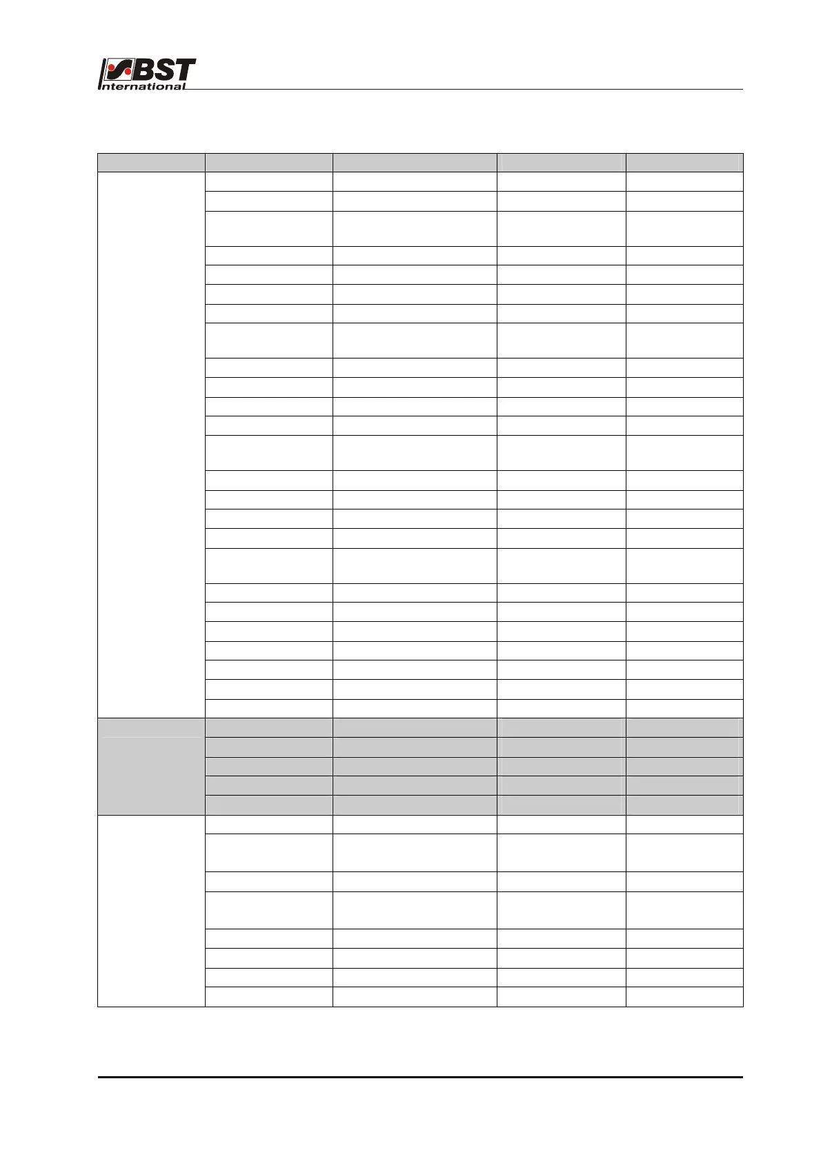 Menu Parameter Level 1 Parameter Level 2 Parameter Level 3 Default Value
