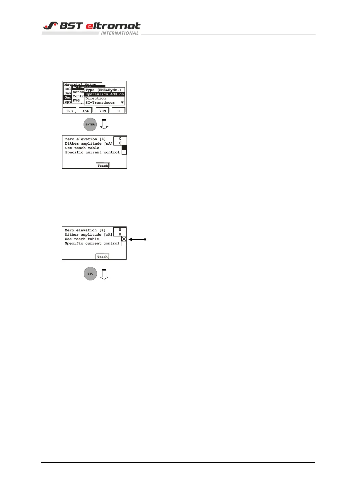 If a hydraulic actuator is used, then additional hydraulic settings
