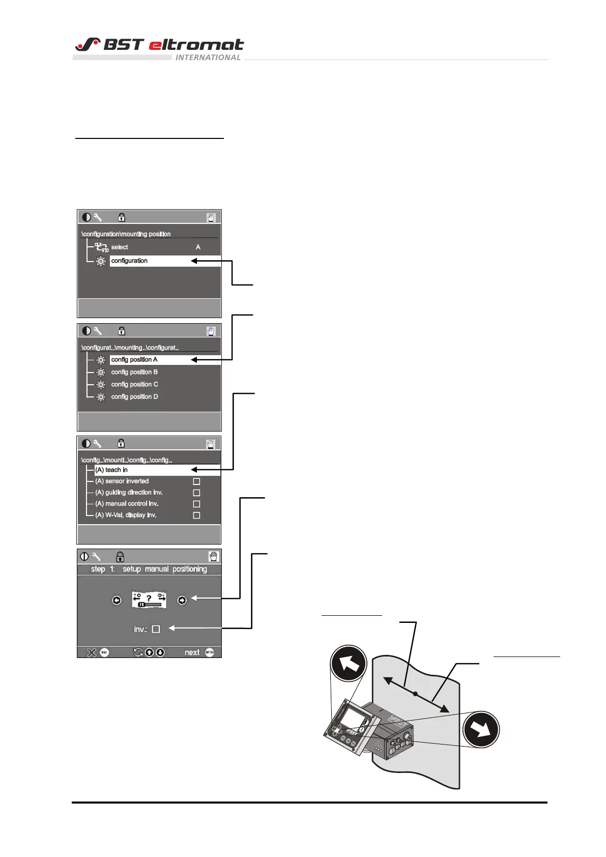 Open the Mounting-Position in the Configuration sub-menu and