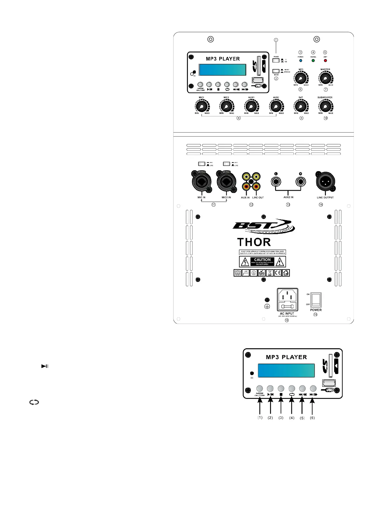 1. SELECTION DU MODE: Appuyez pour sélectionner USB/SD/BT