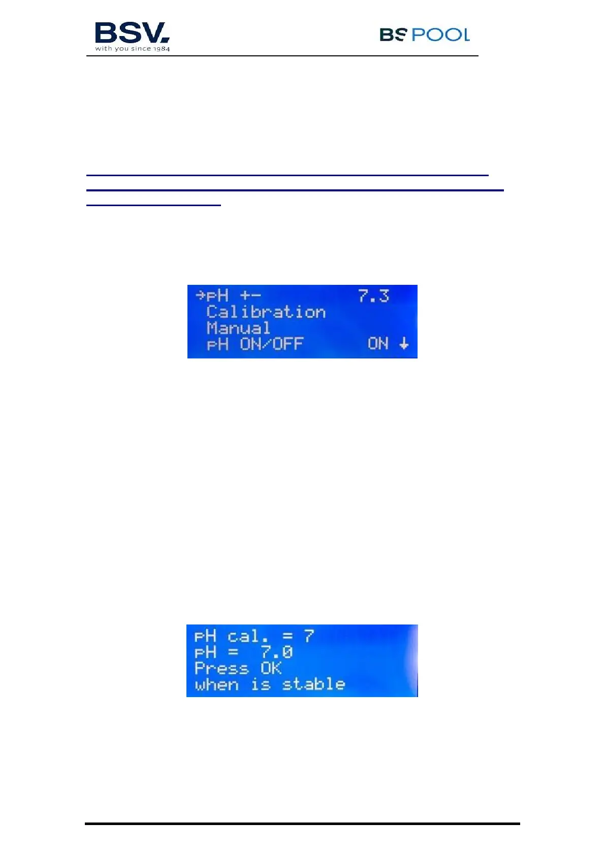 In the control, go to “Menu” – “pH” – Calibration. The 1st line of the display