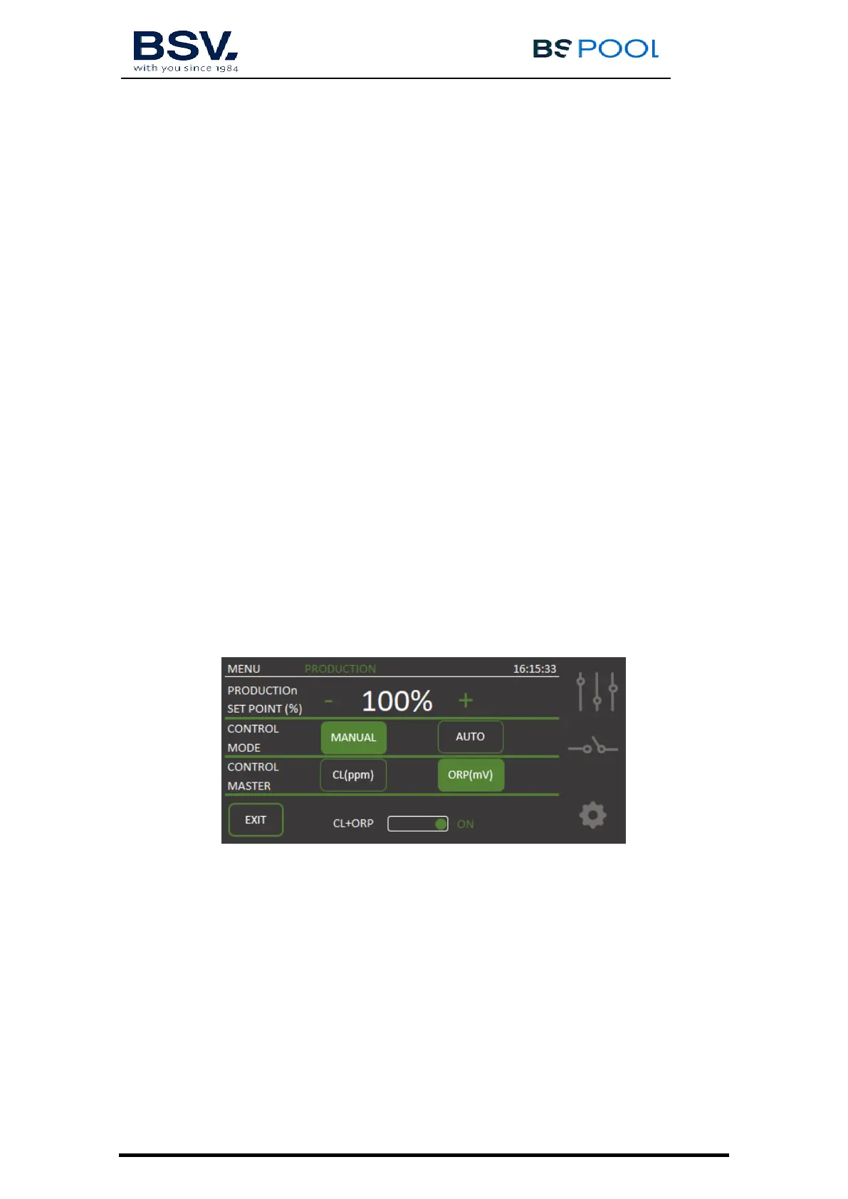 Maximum chlorine production can be set it by pressing + or – button. Select