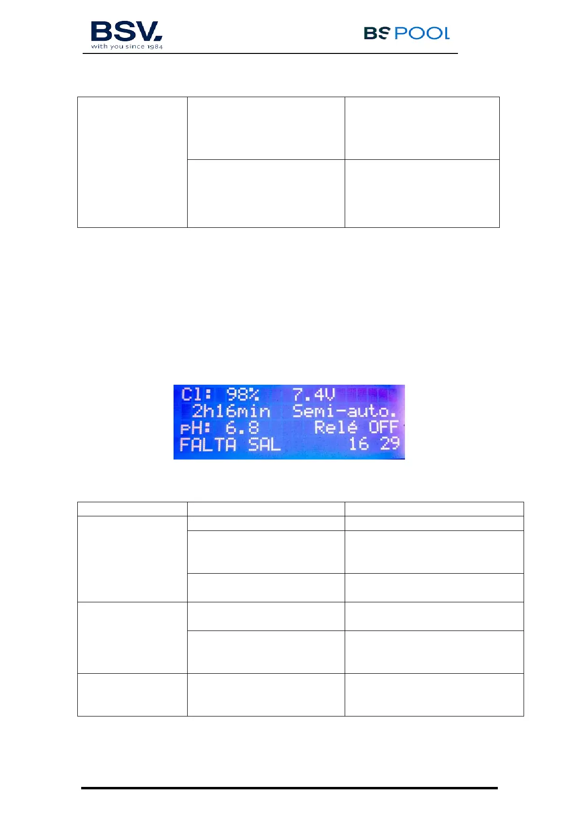 un mensaje de alarma en la 4ª línea de la pantalla, junto a un aviso acústico.