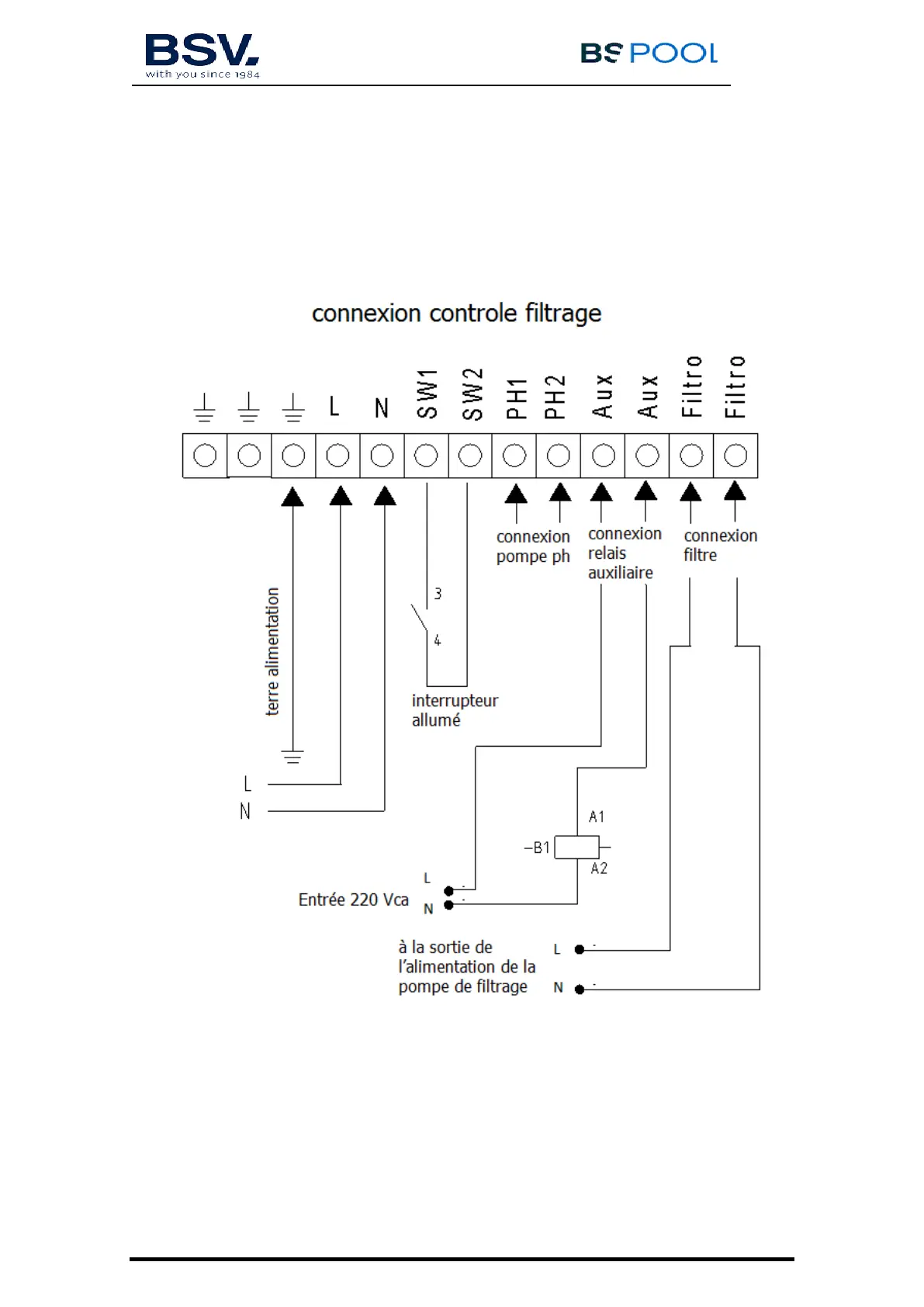 Vous pouvez contrôler la pompe de filtrage à travers le relais auxiliaire en