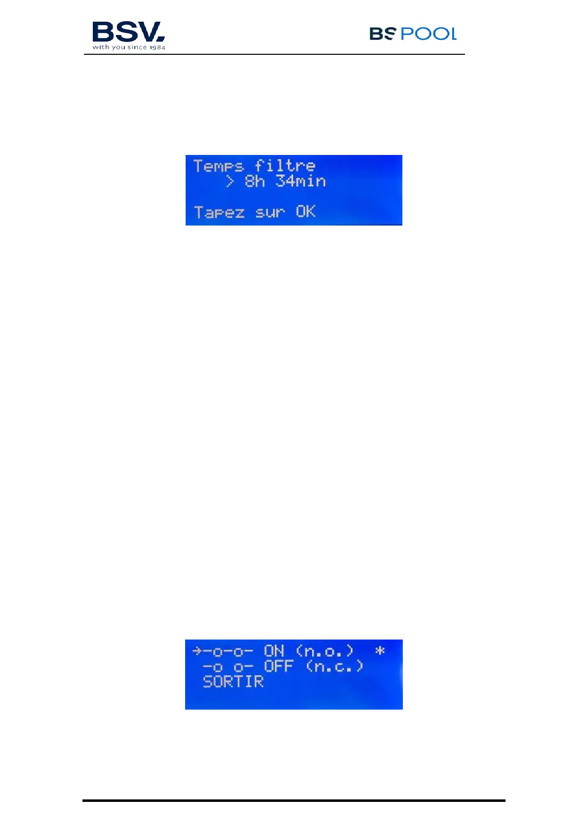appuyant sur la touche OK du clavier, la fonction passe du mode piscine