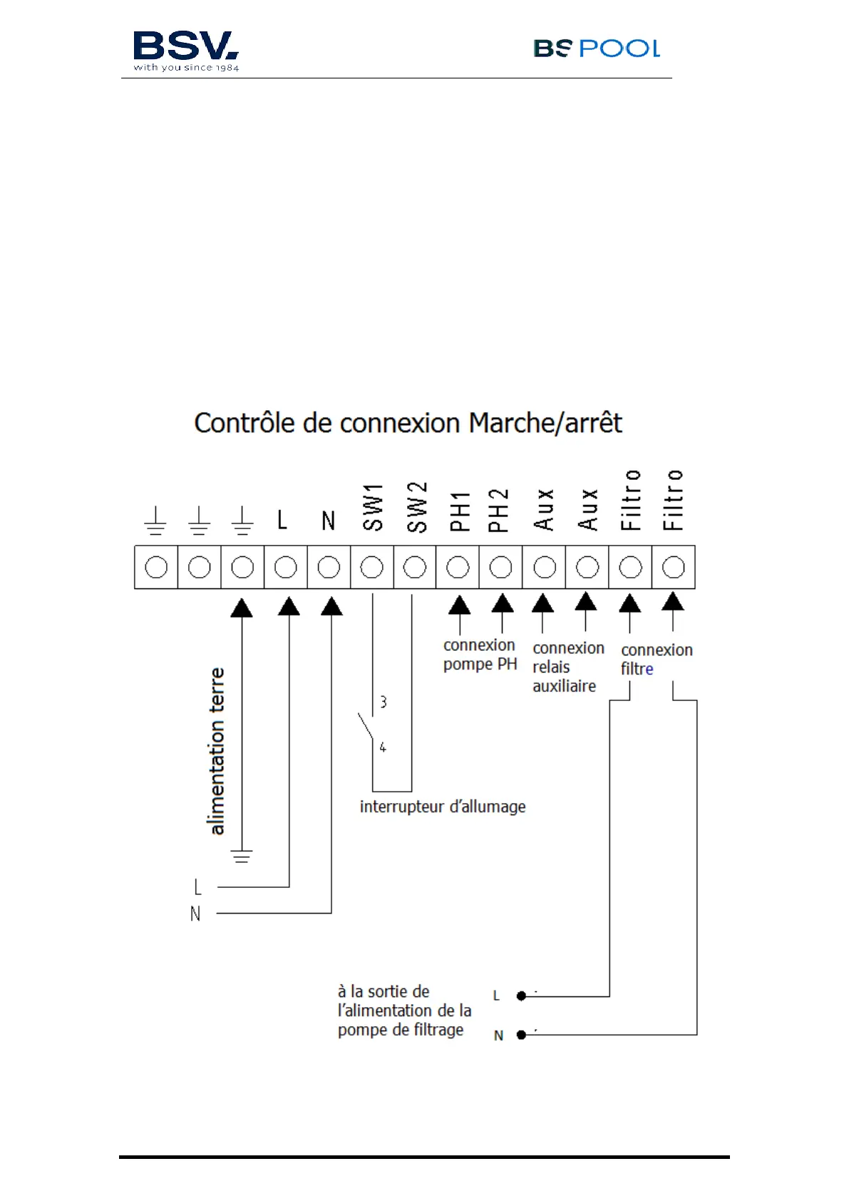 connecter les entrées « filtre » en parallèle à l'alimentation de la pompe de
