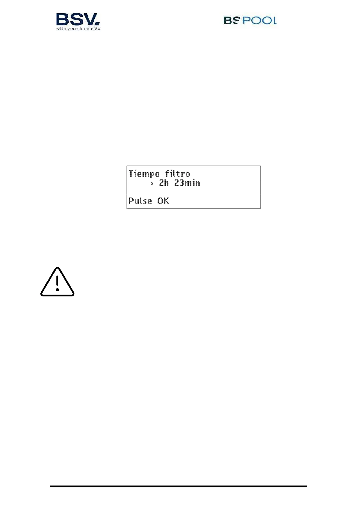Cada vez que se cambie el valor, al salir del menú, nos aparecerá en pantalla las horas de filtración