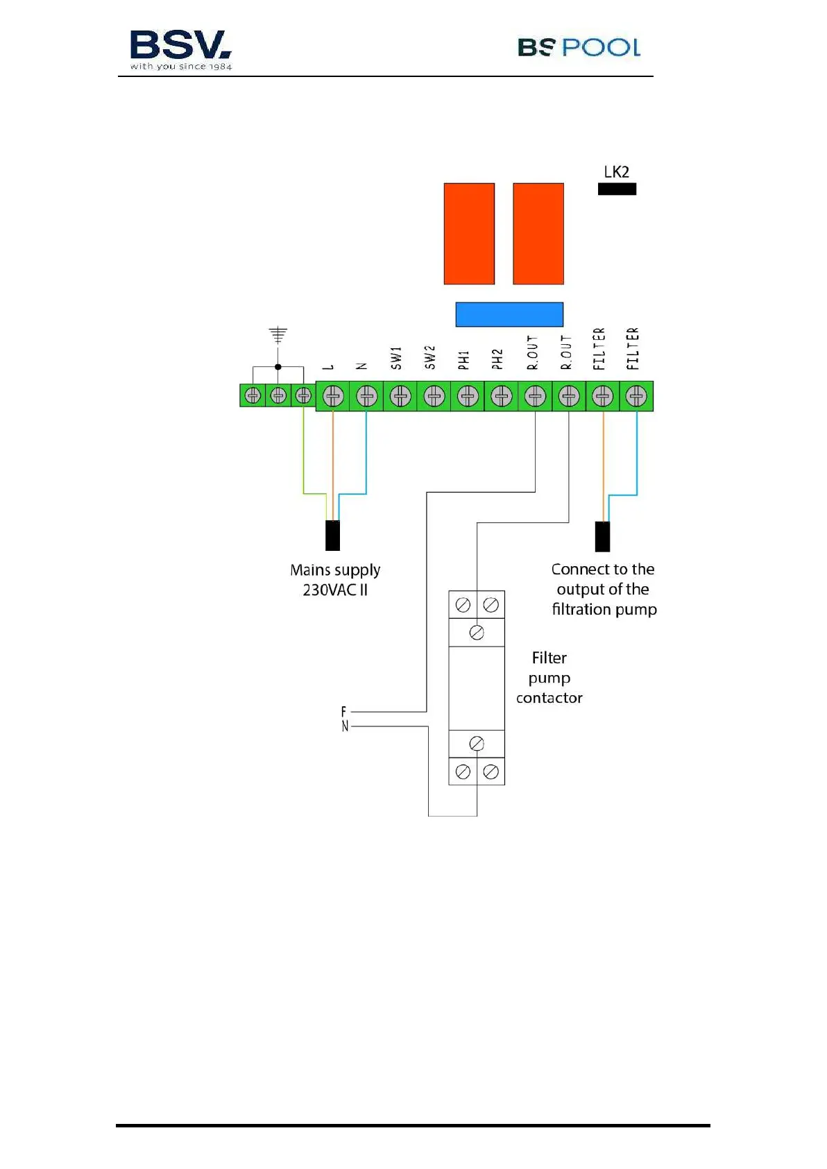 The filtering pump can be controlled through the auxiliary relay, following this diagram: