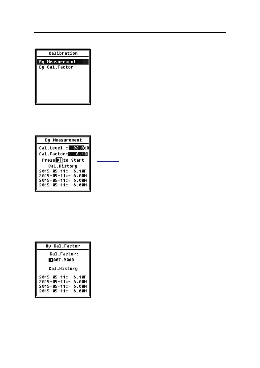 calibration with sound calibrator. Method of By Cal.Factor can manually adjust the calibration