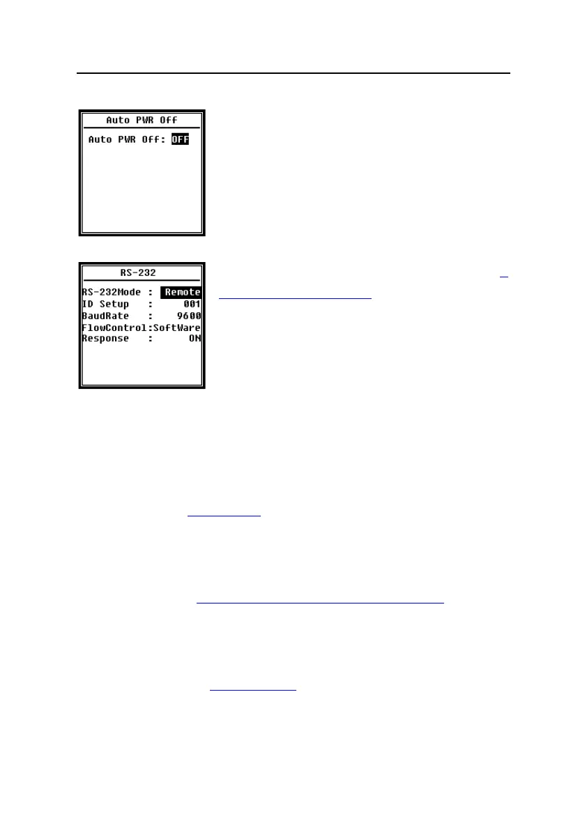 Menu of RS-232 can set the option of serial port, refer to 5.