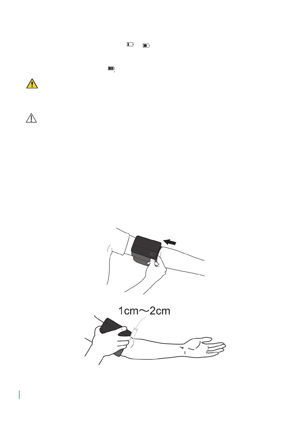 4) Place the CUFF around a bare Arm 2-3cm above the Arm joint on the palm side of the Arm.