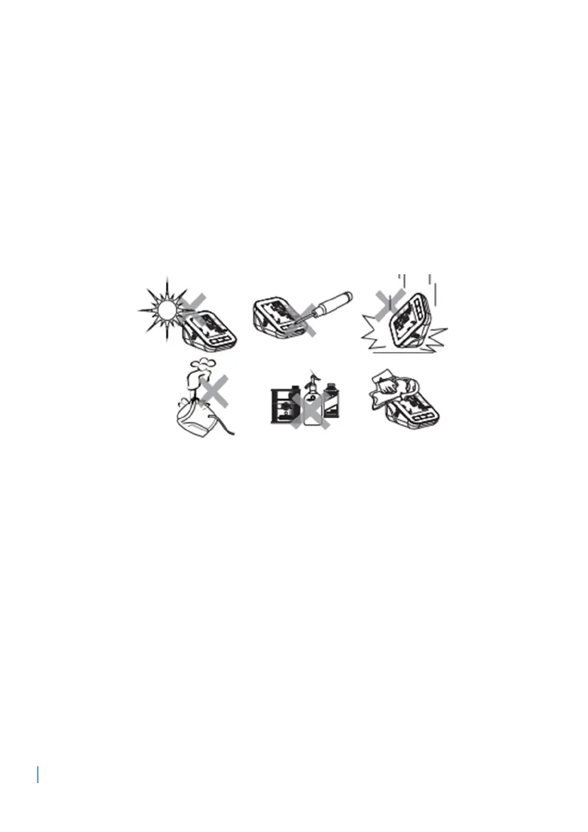 g) Please do not use water to clean or moisten the CUFF, and when necessary, absorbent cotton