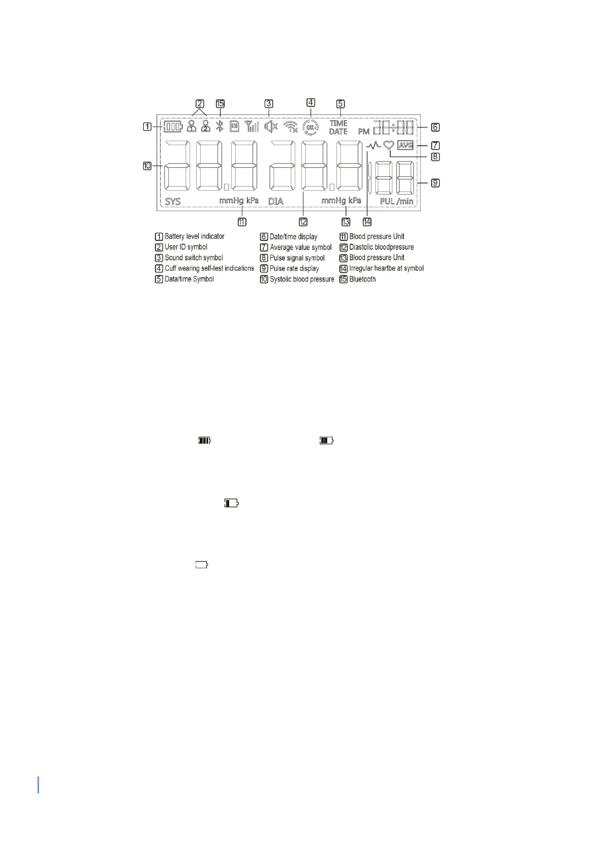 and will indicate the battery level on LCD display. Details are as follows: