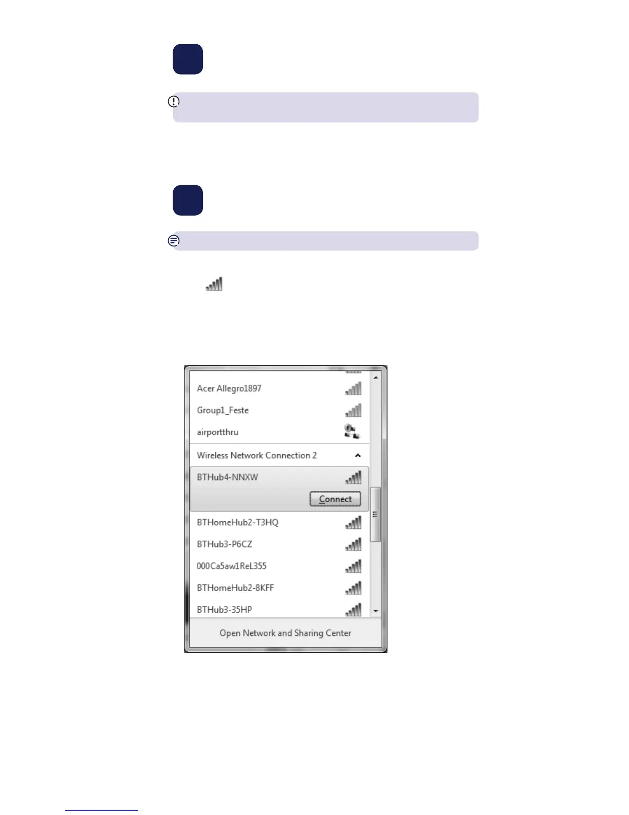 2 Choose your router from the list (e.g. BTHub-xxxx) and click Connect.