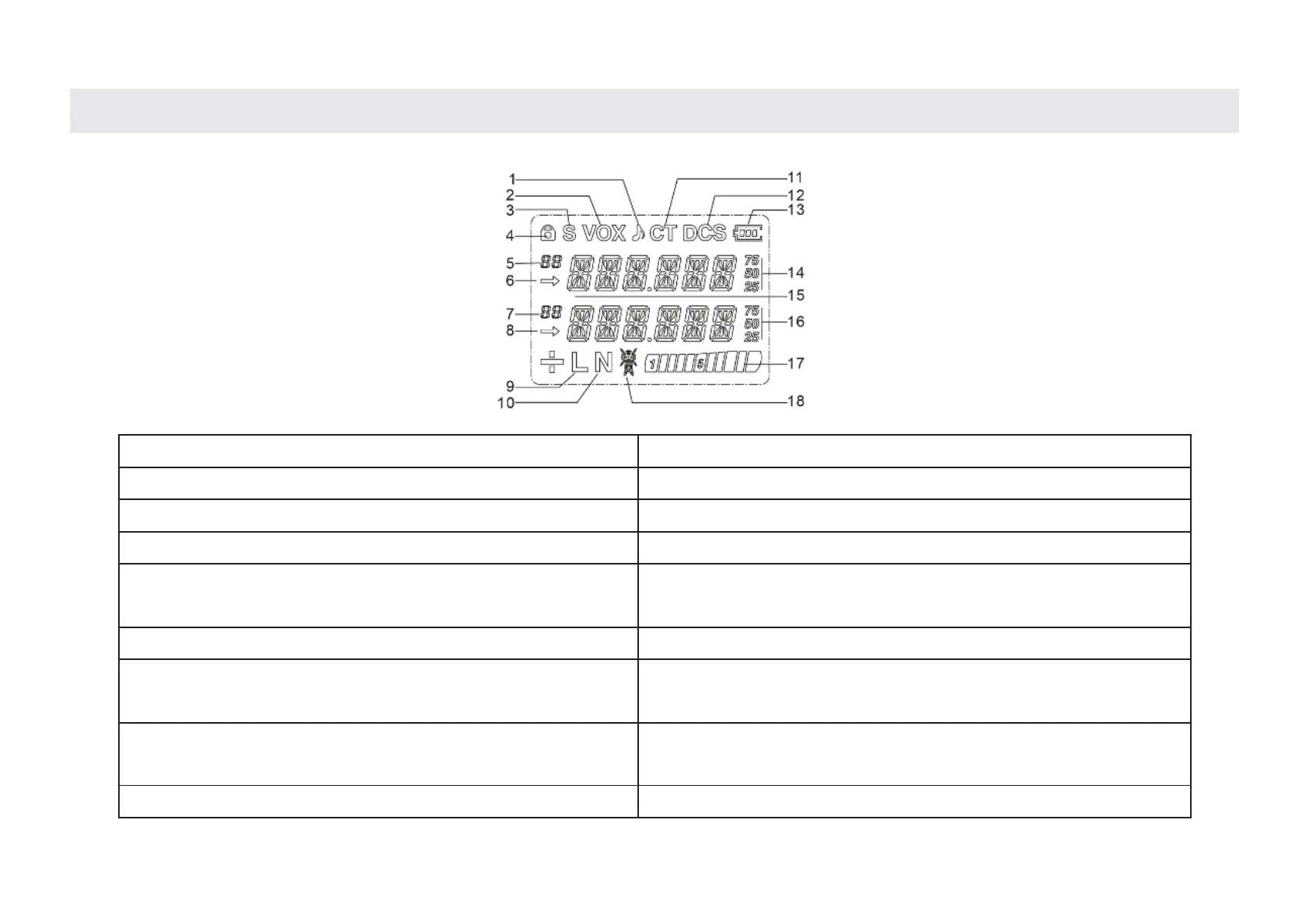 1. Call Tone (Off, 1–20) 10. Narrowband Indicator (working at 12.5KHz)