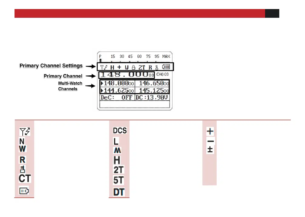 The Top Line on the LCD will show the current selected channel’s settings at a glimpse: