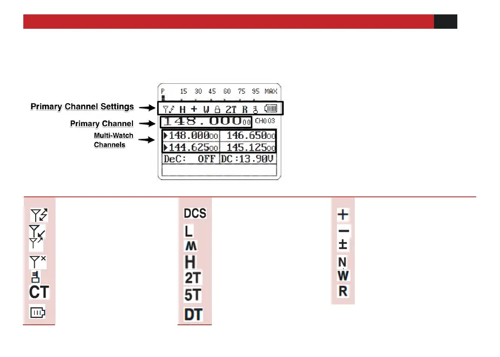 The Top Line on the LCD will show the current selected channel’s settings at a glimpse: