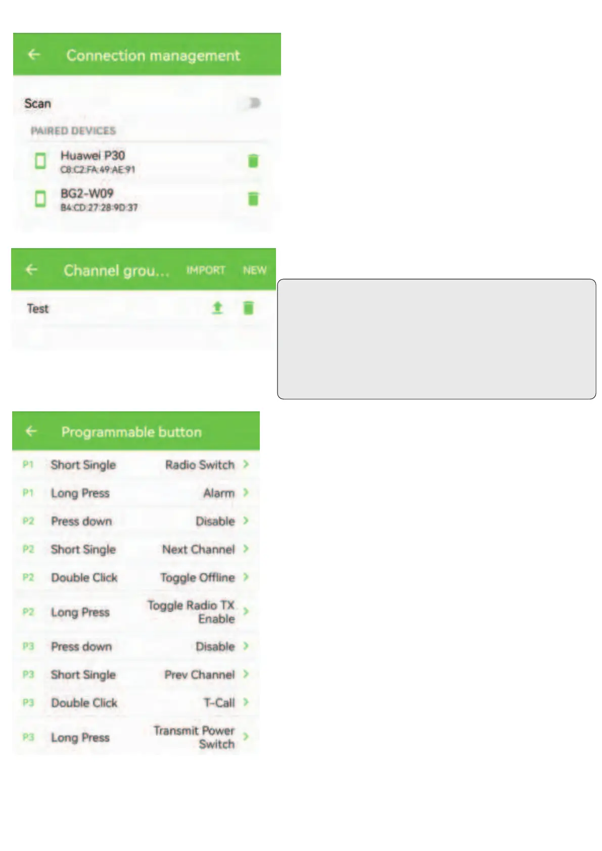 Connection management is Check the status of the external Bluetooth device connected to the walkie-talkie