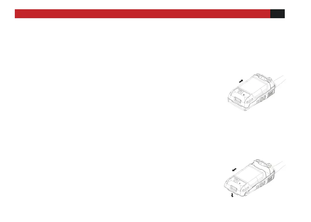 radio. Once aligned with the guide-rails, slide the battery upward