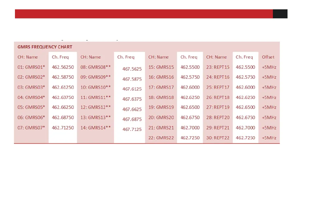 GMRS Frequency Chart, Channel Guide