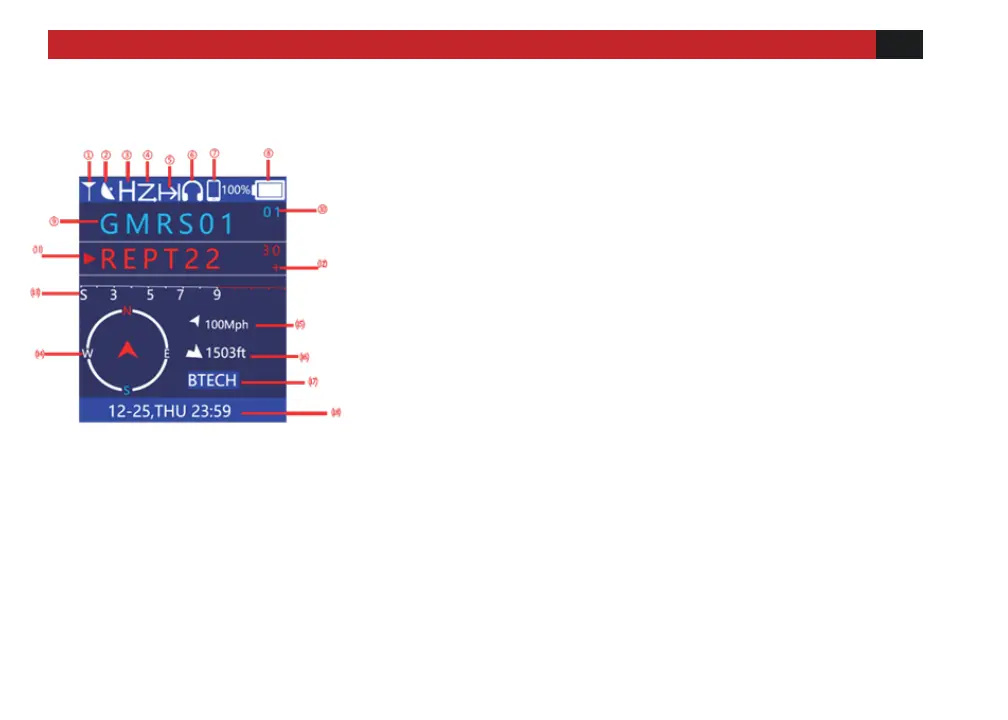 ⑧ Battery power level.