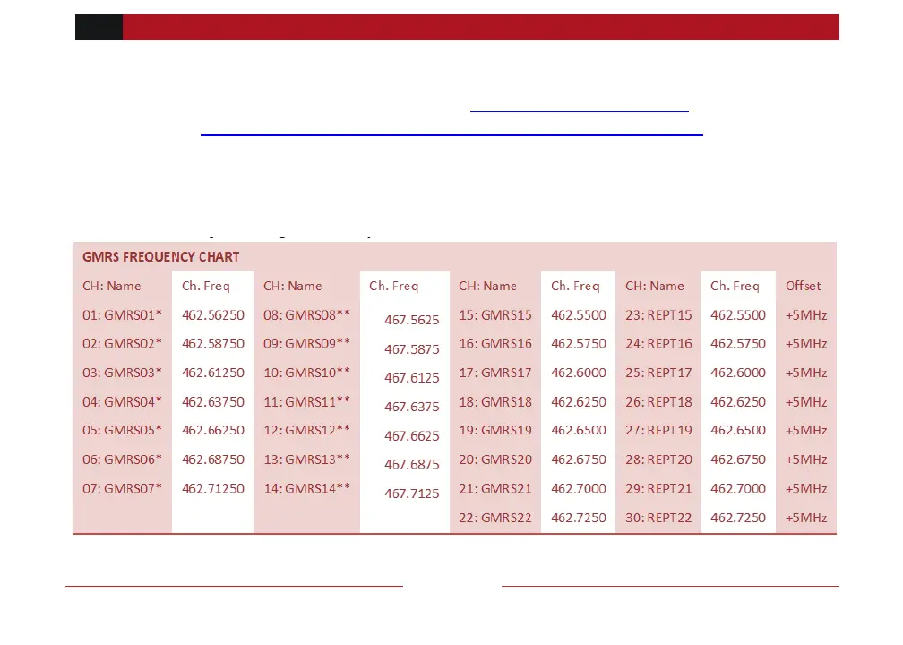 BTECH GMRS-V2 - GMRS Frequency Chart, Channel Guide