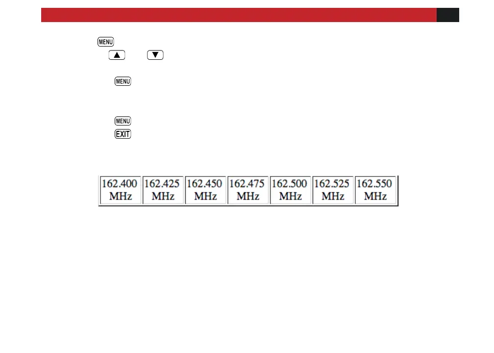 6. Display will show “NOAA _ _” at which point you enter the NOAA channel number (for