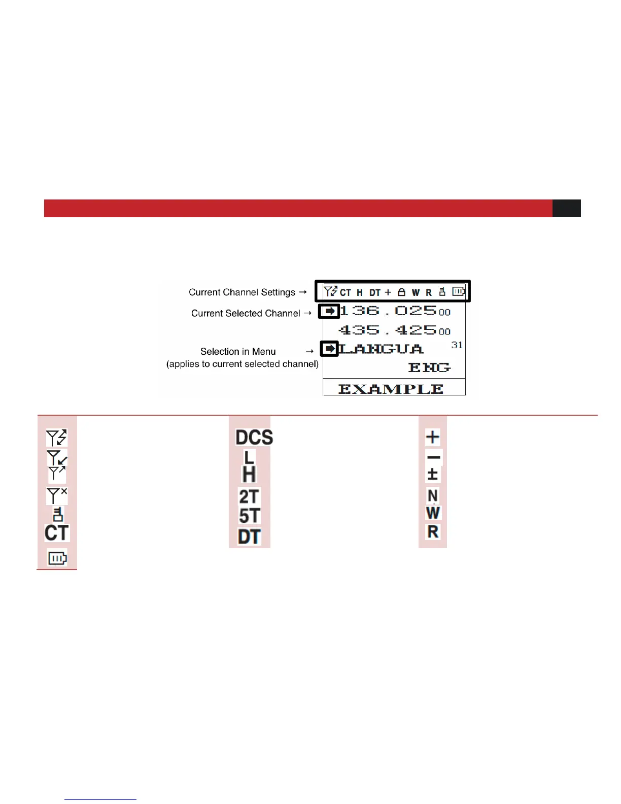 The!Top!Line!on!the!LCD!will!show!the!current!selected!channel’s!settings!at!a!glim pse :!
