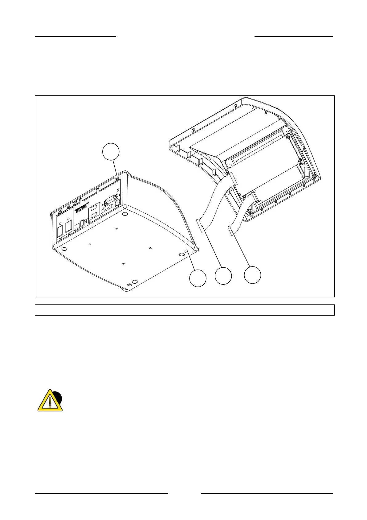 Remove the four screws (ref. 1) and rotate the cover forward, holding it up with one hand to
