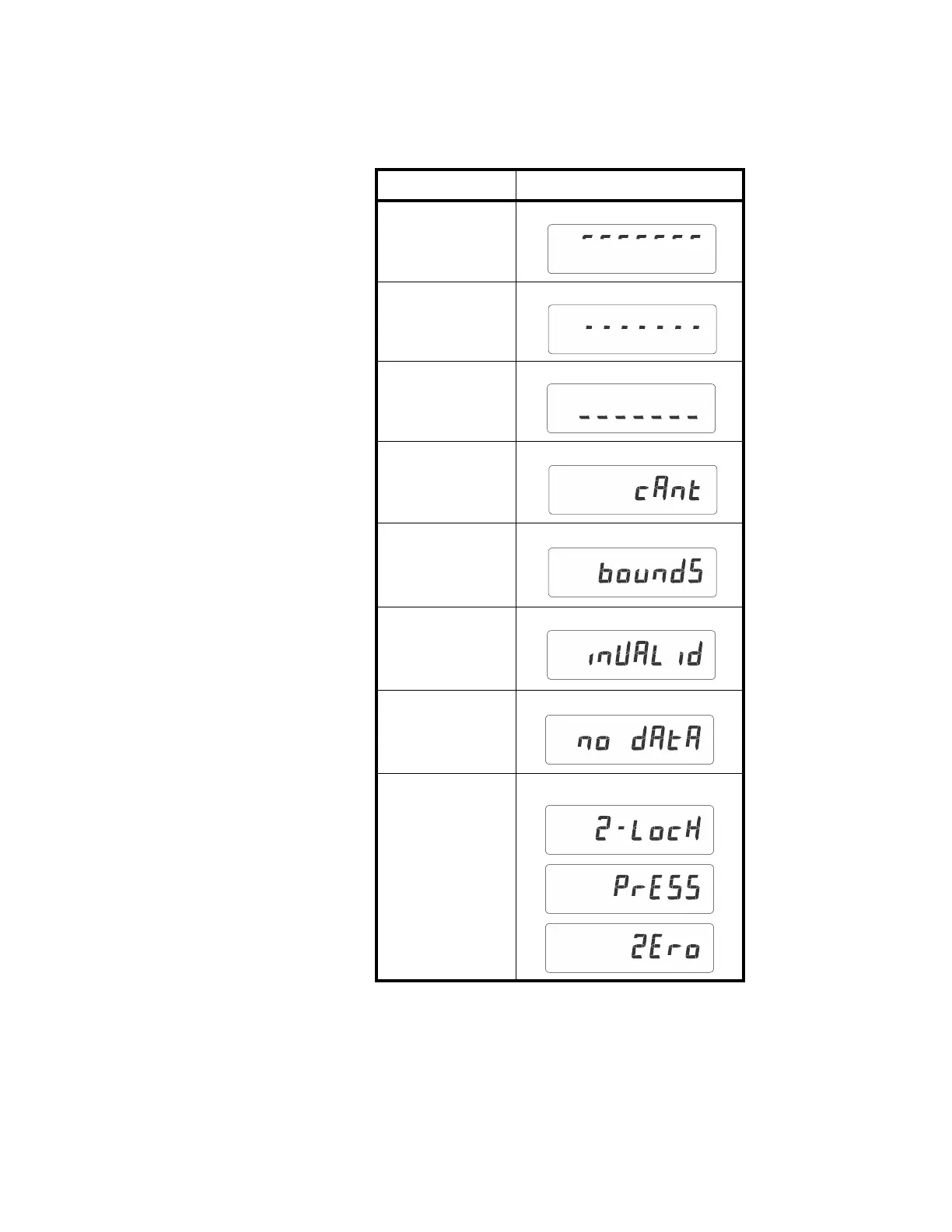 The following error messages may be displayed during use of the indicator: