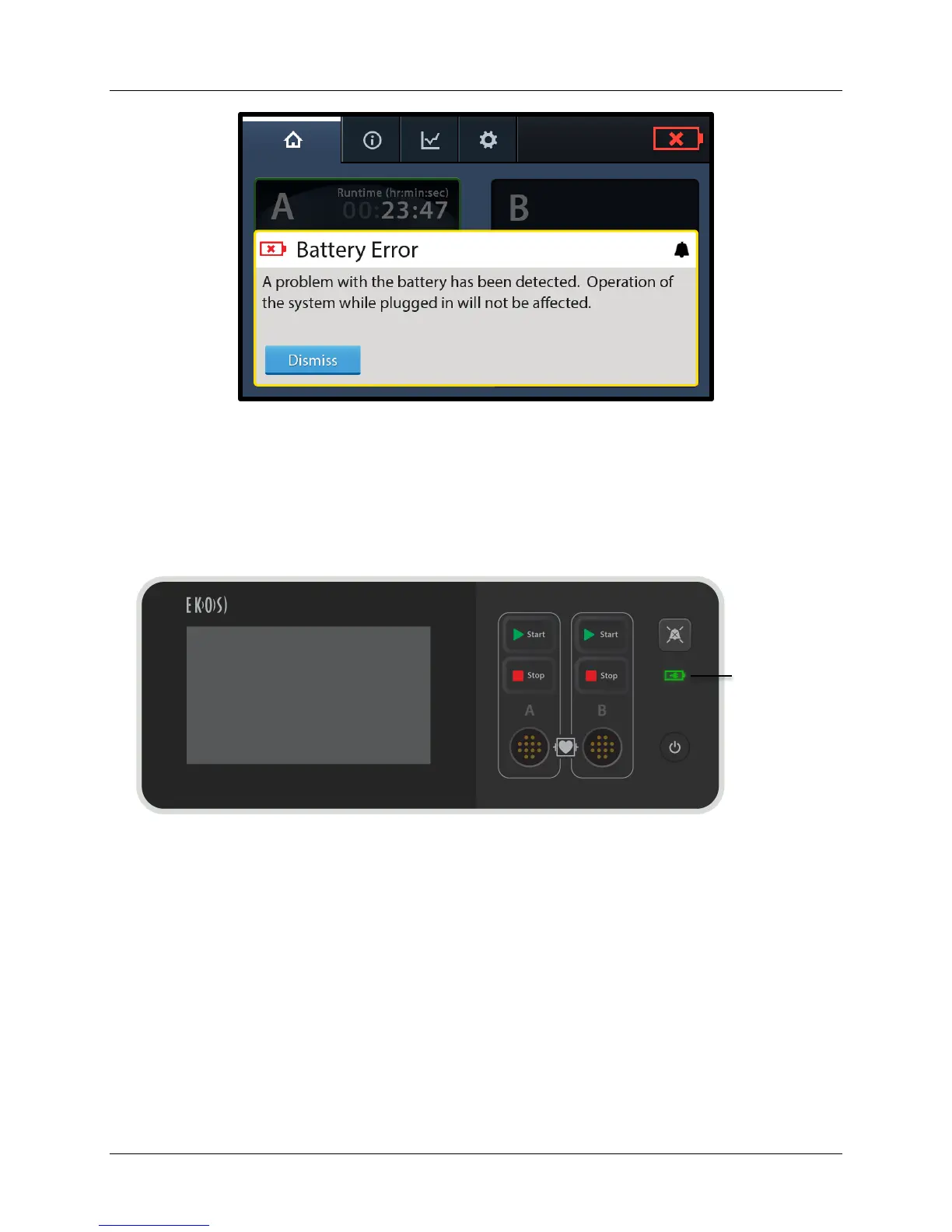 When the Control Unit is turned OFF, a battery icon is illuminated on the front of the
