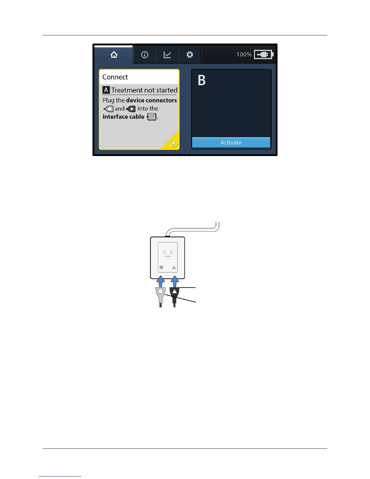 If the device is not properly connected, a connect message displays indicating