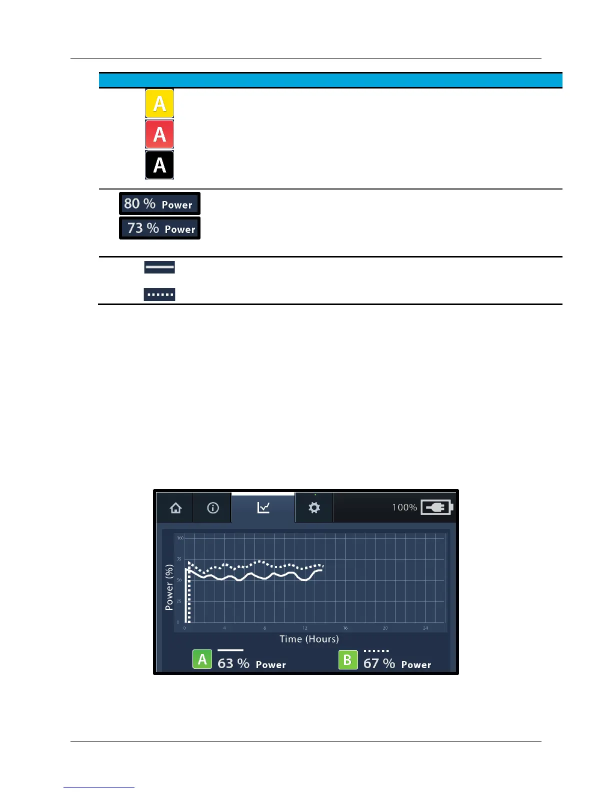 The power graph screen (Figure 37) shows an example of what is displayed for two