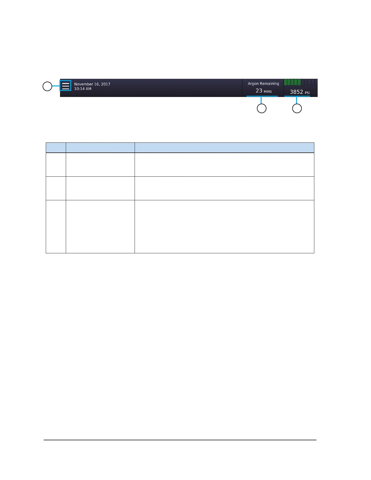 2 Argon Remaining Displays an estimate of time remaining before depletion of the